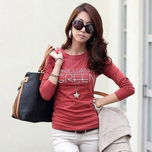 2016秋装韩版长袖t恤女打底衫纯棉修身显瘦圆领字母女士外穿上衣