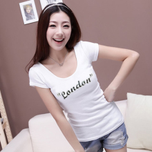 韩版纯棉t恤女短袖修身夏季女装紧身圆领打底衫印花字母半袖体桖