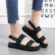 欧美罗马一字带休闲简约绒面松糕鞋女夏 2017新款夏季凉鞋女厚底