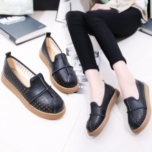 平底单鞋女套脚2017春季新款复古圆头夏学院风女鞋镂空透气小皮鞋