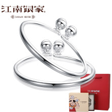 江南银家 宝宝银手镯999纯银婴儿 一对小孩满月银饰品儿童银镯子