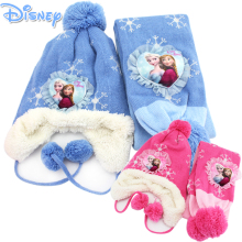 正品迪士尼冰雪奇缘公主儿童帽子围巾套装冬季宝宝护耳帽子围巾