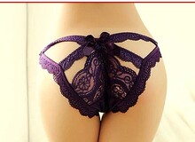 推荐新品款内裤女性感蝴蝶结低腰蕾丝冰丝透明诱惑内衣三角裤