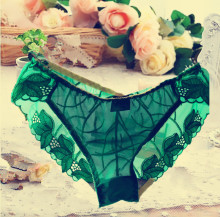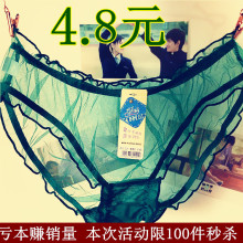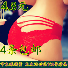 包邮超透明薄纱性感提臀内裤女式蕾丝诱惑低腰三角裤头底档棉大码