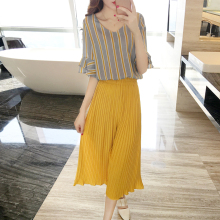 2017春装新款女装韩版宽松喇叭袖雪纺两件套夏九分阔腿裤套装女潮