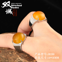 925纯银戒托男款旦形 定做加工镶嵌琥珀蜜蜡空托 J8186 14*16