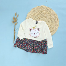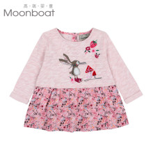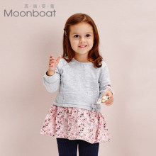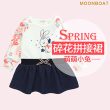 MOONBOAT童装秋新款女童连身裙碎花长袖宝宝拼接连衣裙婴儿裙子