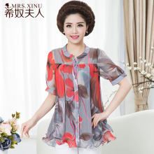 妈妈夏装短袖雪纺衬衫中老年女装2017新款40岁50岁妈妈装两件套