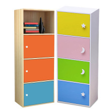 简易四层带门全带锁储物柜书柜小柜子自由组合儿童柜收纳柜阳台柜