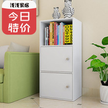 简约现代三层柜子储物柜带门小书柜木质书架自由组合收纳置物柜子