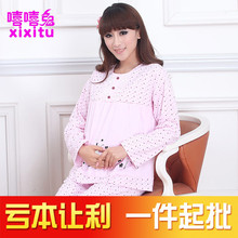 嘻嘻兔月子服哺乳装 孕妇夏季喂奶衣 睡衣裤子长袖 薄款家居服装