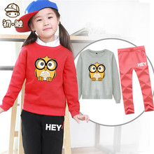 初触女童套装春秋2017新款中大童圆领长袖卫衣两件套卡通外出服潮