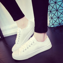 白色女士帆布鞋夏季透气平底平跟百搭休闲小白鞋系带学生韩版厚底