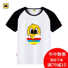 情侣装夏装小黄鸭卡通印花短袖T恤打底衫女纯棉圆领学生班服定制