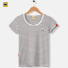 情侣装夏季韩版卡通胸标印花条纹短袖T恤男女海魂衫DIY班服定制潮