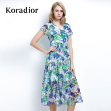 Koradior/珂莱蒂尔正品新款夏季韩版碎花长裙收腰雪纺印花连衣裙