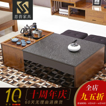 火烧石功夫茶几火烧石水曲柳实木办公室泡茶几功夫茶台玄武石家具