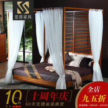 槟榔色东南亚风格家具卧室架子床四柱子床新中式水曲柳实木床