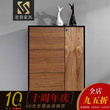 思普家具 北欧现代简约风格 鞋柜 简约胡桃木色 储物柜 鞋橱