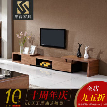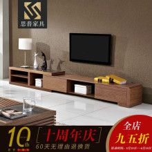 思普家具 北欧现代简约胡桃木风格玄武火烧石电视柜组合 伸缩尺寸