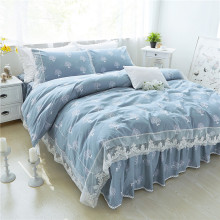 威丽菲全棉韩版公主风蕾丝床裙款四件套碎花花边100%纯棉床上用品