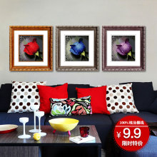 滴水玫瑰红紫蓝滴露玫瑰花朵新款印花小幅花卉纯棉线绣K100十字绣