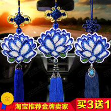莲子佑宝蓝色荷花平安符莲花汽车挂件十字绣印花双面珠绣车饰