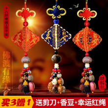 新款印花平安福十字绣汽车挂件满珠绣平安符中国结吊坠三面车挂饰