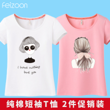 非众纯棉短袖t恤女夏 修身小衫学生大码女装卡通半袖百搭夏装上衣