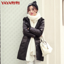 鸭鸭2016冬季新款女装连帽修身羽绒服女中长款过膝韩版长款羽绒衣