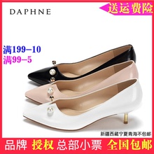 达芙妮 2017春新款尖头细跟真皮单鞋1017101010通勤羊皮高跟女鞋
