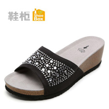 达芙妮旗下鞋柜正品舒适坡跟女拖鞋1115303121