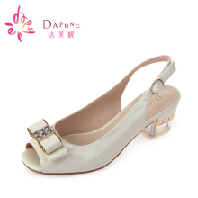 Daphne/达芙妮正品水钻蝴蝶结鱼嘴水晶粗跟女凉鞋1014303049