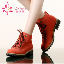 Daphne/达芙妮专柜正品系带中跟防滑复古型女短靴1014605030