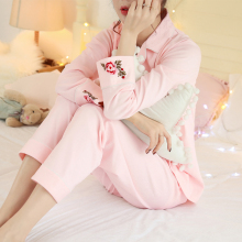 名媛刺绣睡衣女春秋纯棉长袖甜美可爱粉色公主女士全棉家居服套装