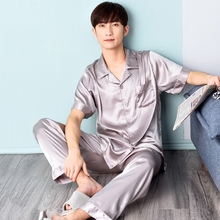 睡衣男夏短袖冰丝长裤丝绸夏季薄款青年夏天翻领衬衫家居服套装