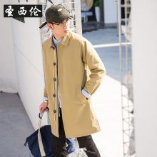 春秋男士薄款纯色宽松风衣青年学生中长款单排扣外套男插肩袖潮