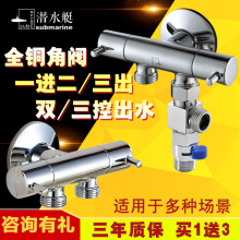 潜水艇角阀一进二出双控开关出水三通洗衣机马桶分水器4/6分全铜
