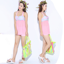 泳衣女三件套比基尼罩衫韩国小香风学生裙式分体性感温泉游泳衣女