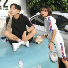 2017夏季新款短袖t恤短裤运动服韩版潮流情侣男士休闲套装两件套