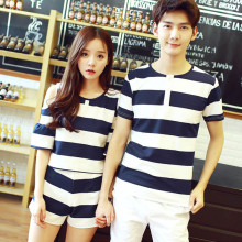 情侣装夏装2017新款女装韩版短袖t恤男夏季海边套装女沙滩学生潮