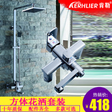 肯勒花洒卫浴全铜带升降冷热淋浴龙头增压方形全套装