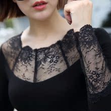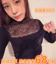 2016新款简依兰修身蕾丝打底衫性感镂空衣显瘦百搭女装加绒包邮