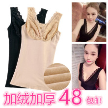 新款V领蕾丝加绒无缝背心女性感修身加厚显瘦塑身收腹塑腰美体