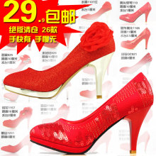 包邮清仓水晶高跟婚鞋大红色女单鞋上轿回门踩堂新娘鞋中低跟红鞋