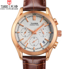 天诗正品男士手表防水时尚潮流男表夜光真皮带学生腕表休闲石英表