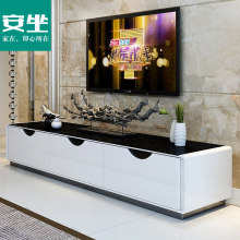 安坐家具现代时尚简约白色烤漆电视柜客厅地柜钢化玻璃茶几604#