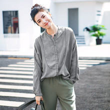 第三频道 春秋新款 水洗丝光棉牛仔衬衣 长袖打底衫 女 471008