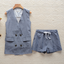 春夏 新款 女装 时尚洋气欧美范 双排扣 阔腿裤 棉麻 套装