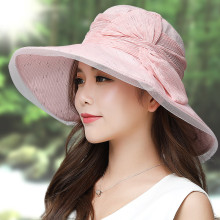 夏季女士太阳帽韩版蕾丝蝴蝶结遮阳帽可折叠防紫外线防晒沙滩帽子
